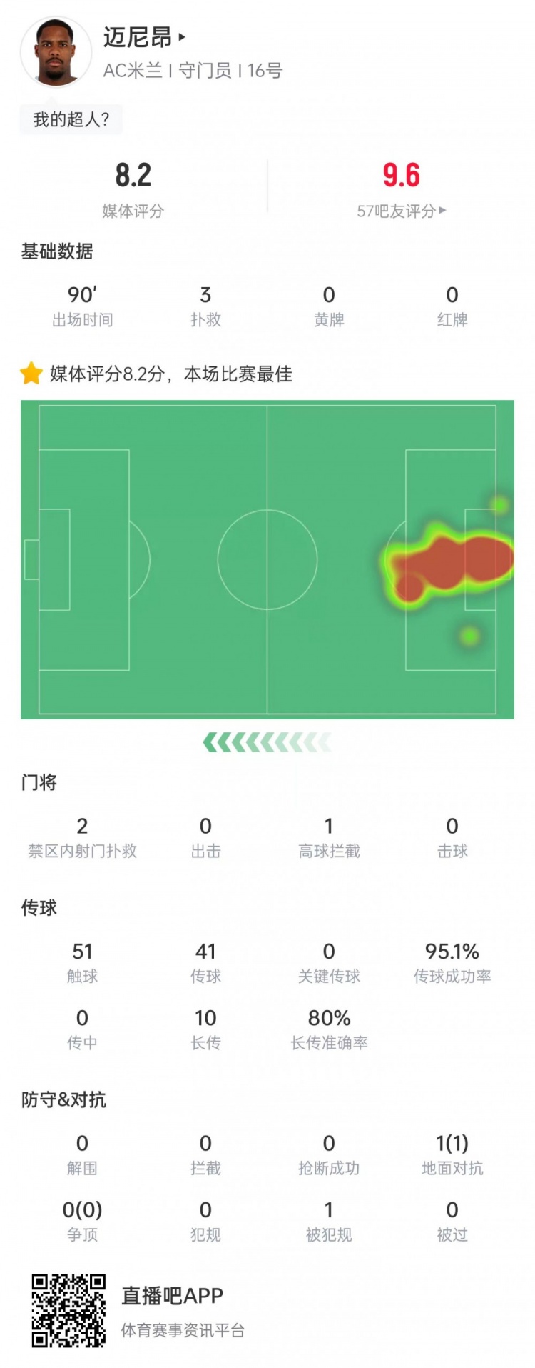10月6日讯 意甲第6轮比赛,迈尼昂完成零封,米兰客场0-0战平尤文。迈尼昂此役作念出3次扑救,力保球门不失。