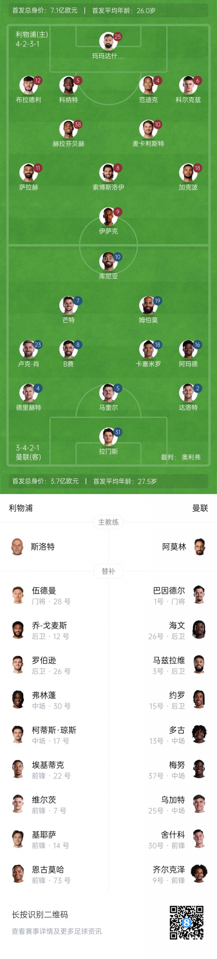 10月19日讯 北京本事今晚23点30分,英超重头戏利物浦vs曼联的双红会,两边如故公布了首发威望。利物浦方面,维尔茨、埃基蒂克、弗林蓬三大新援均替补待命。