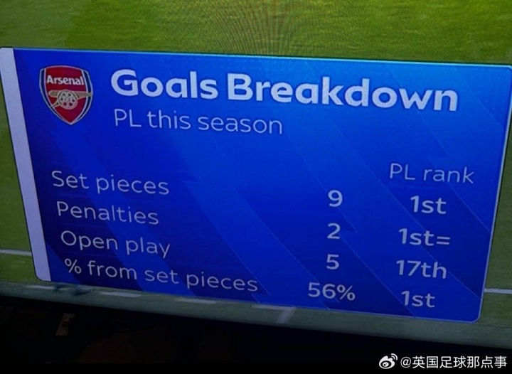 【定位球民众👑】天外体育统计阿森纳本赛季英超16个进球散播: