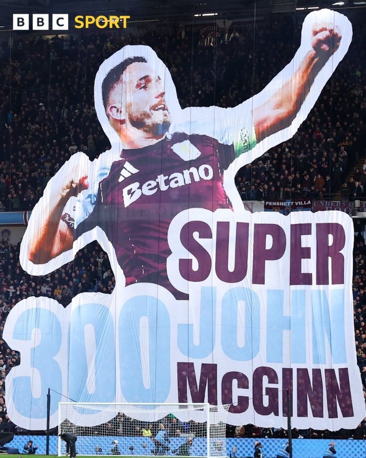 本场比赛维拉队长麦金首发出场,这亦然他代表球队第300次出场里程碑之战,主场球迷也制作巨幅TIFO为其祈福。