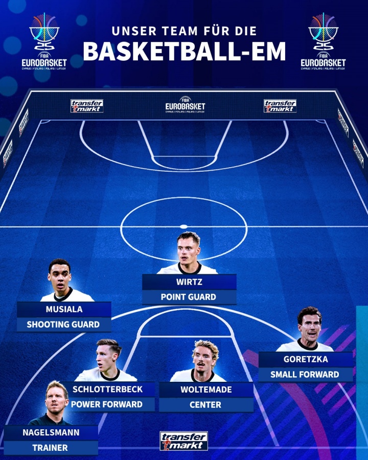 你的位置:沙特超级联赛 > 德甲 > 足篮联动!德转整活欧锦赛决赛首发:沃尔特马德中锋,维尔茨控卫