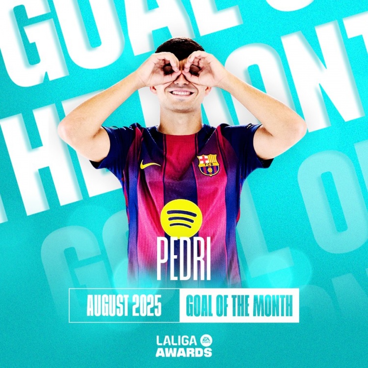 9月10日讯 西甲官方音书,佩德里对阵莱万特打入的远射当选联赛8月最好进球。