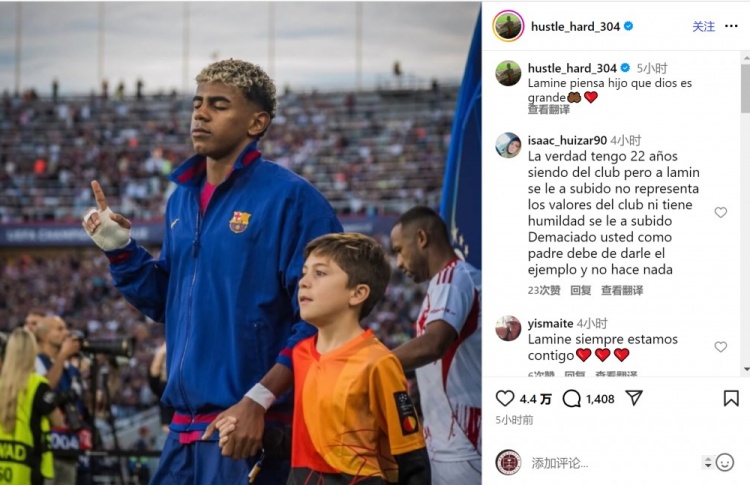 亚马尔赛前曾公成立表嘲讽皇马的言论,但他未能匡助巴萨在国度德比中取胜,亚马尔的父亲穆尼尔社媒辘集发文劝慰女儿:“拉明,孩子你要肯定——天主自有其盛情。”