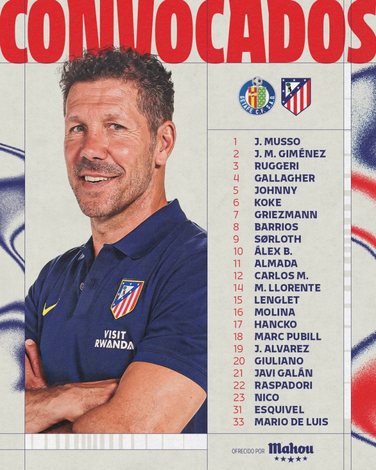 11月23日讯 北京时代翌日凌晨1点半,西甲第13轮,马竞客战赫塔费,马竞公布了此役球队大名单。