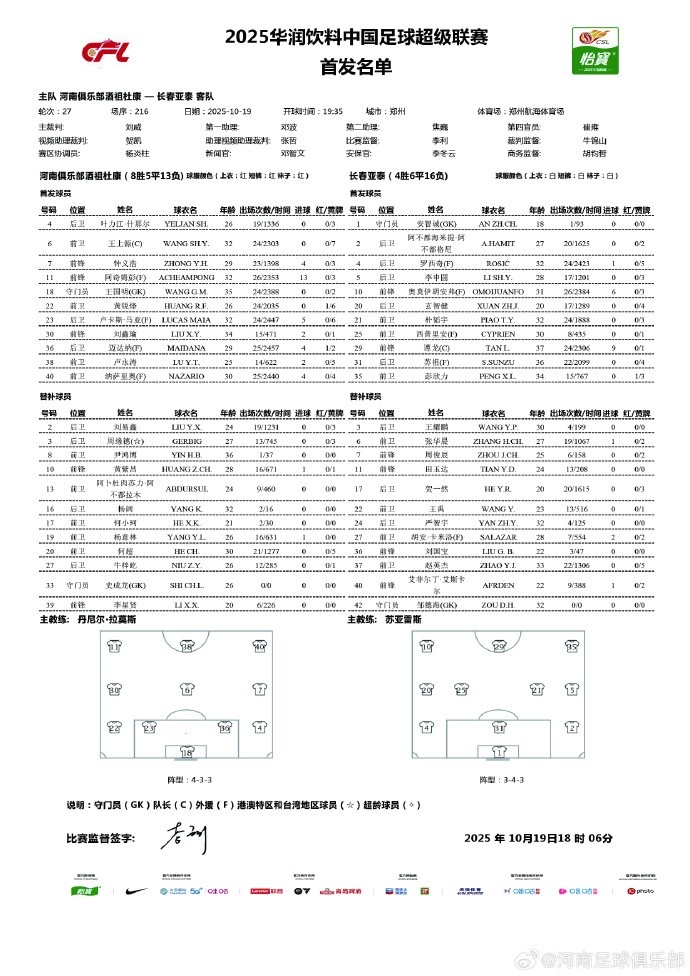 你的位置:沙特超级联赛 > 意甲 > 中超第27轮,河南俱乐部酒祖杜康VS长春亚泰 首发及替补队员名单
