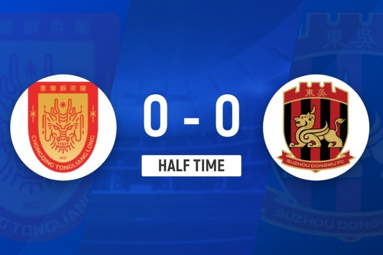 伤停补时6分钟。上半场比赛截止,重庆铜梁龙0-0苏州东吴。