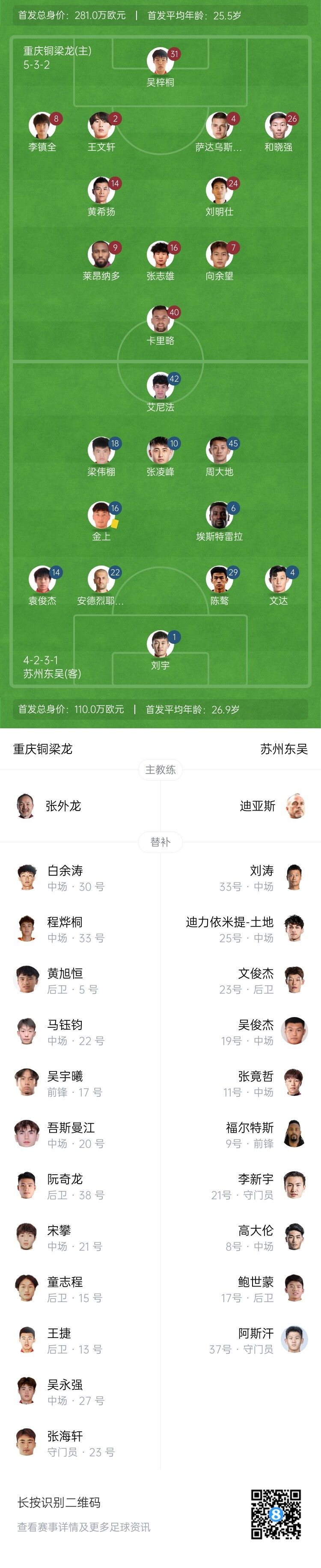 【两边首发以及替补信息】