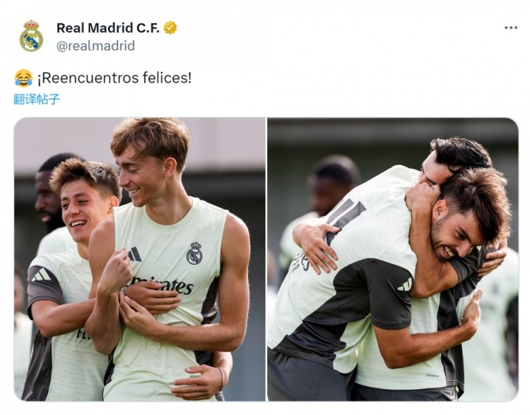 9月10日讯 皇马官方更新社媒动态,晒出从国度队归来球员的像片。