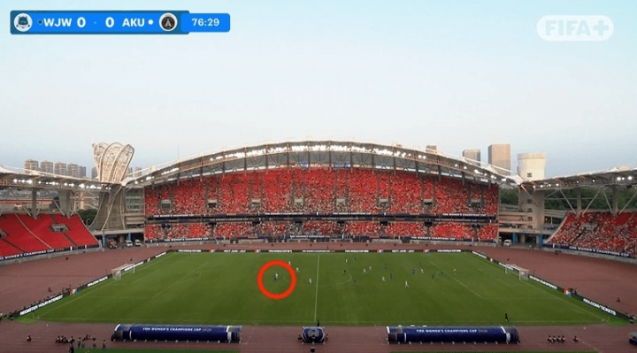 10月08日讯 FIFA女足冠军杯第一轮,武汉车谷江大女足vs奥克兰联女足,比赛第74分钟,门将陈晨狡计,王霜过掉门将敲门笔直,但VAR介入后裁判线路王霜越位在先进球无效。
