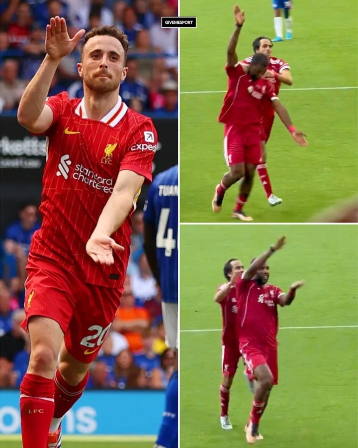 此前萨拉赫在英超首轮破门后曾经以相似的庆祝当作问候若塔↓