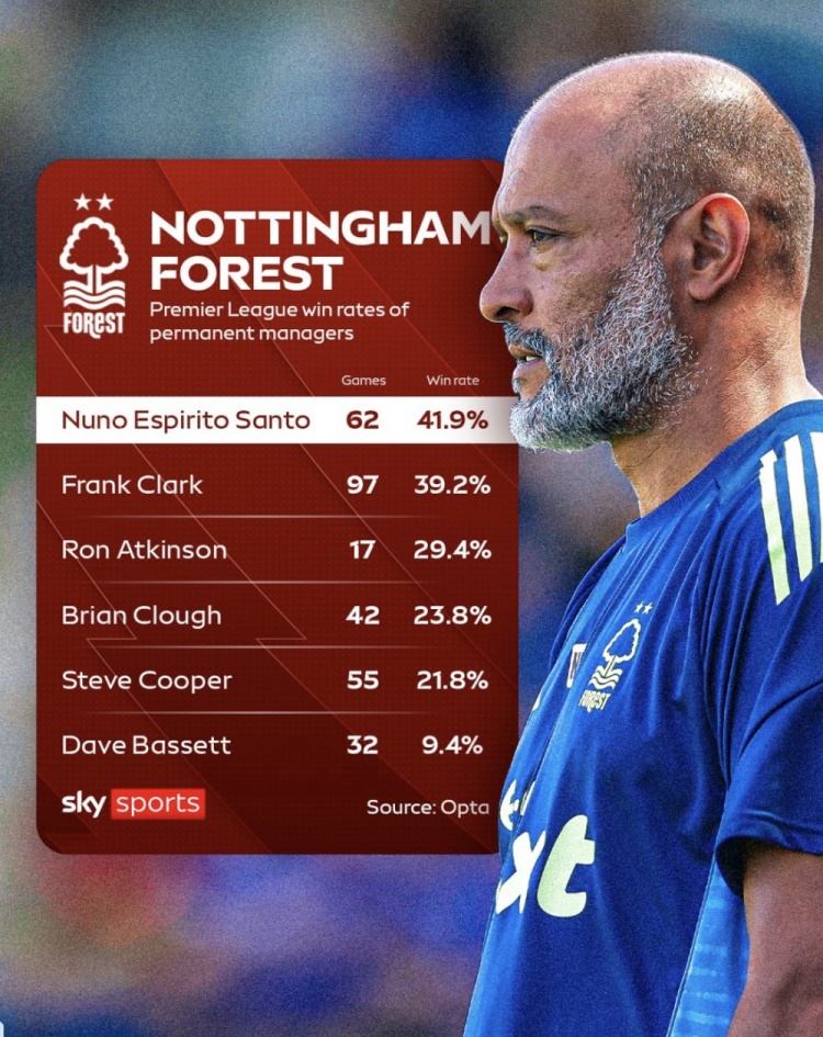 字据数据统计,努诺是丛林队史英超胜率最高的主帅。努诺率队出战62场英超比赛,胜率达到了41.9%。上赛季努诺率队拿下英超第7,得到欧联杯资历。