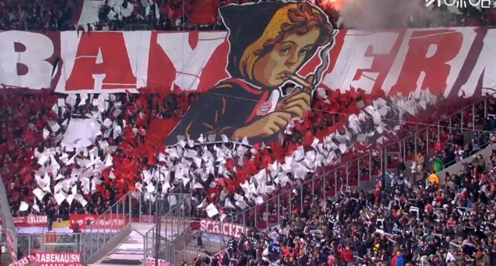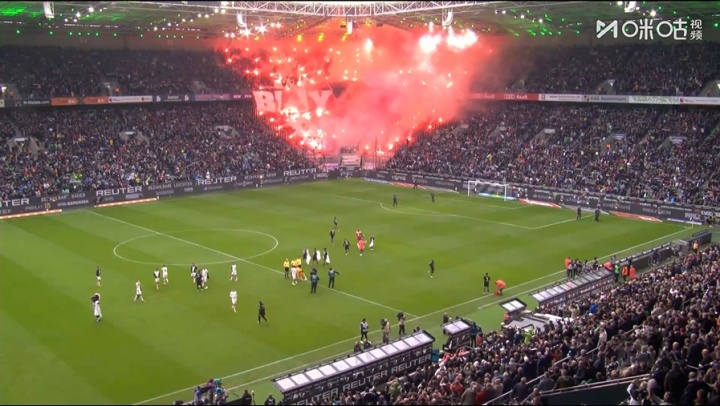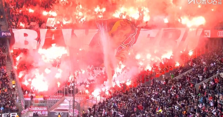 10月25日讯 本日德甲拜仁客战门兴,赛前拜仁球迷看台亮出tifo,并放烟花点火看台!