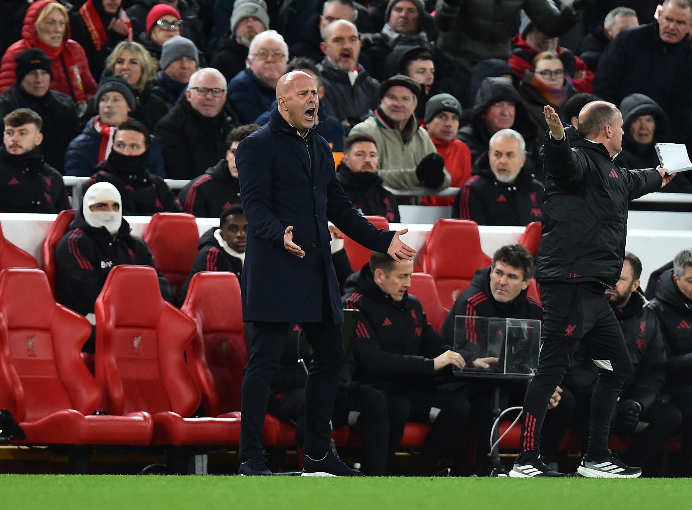 赫拉芬贝赫、麦卡利斯特和索博斯洛伊三东说念主在利物浦控球时提供了基础,但他们的传球很难绽开阵势,而边后卫安迪·罗伯逊和乔·戈麦斯天然推动到了靠前的位置,但他们的传中却未能成效。