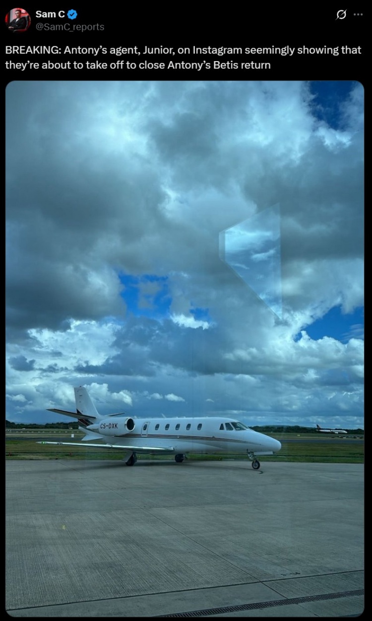 9月2日讯 足球记者Sam C报说念,安东尼的牙东说念主Júnior Pedroso更新个东说念主ins动态,似乎线路他与安东尼行将开拔,以完成球员再次加盟贝蒂斯的转会事宜。